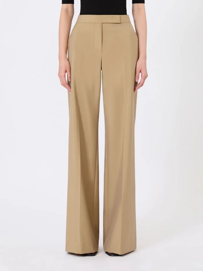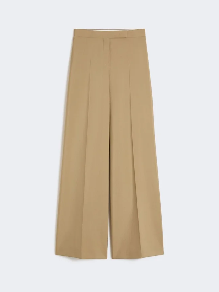 Be the first to review “Wide trousers in wool and silk poplin, camel”