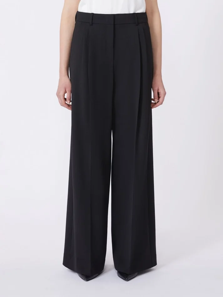 • high-cut waistband with a fly-covered zip and hook-and-bar fastening