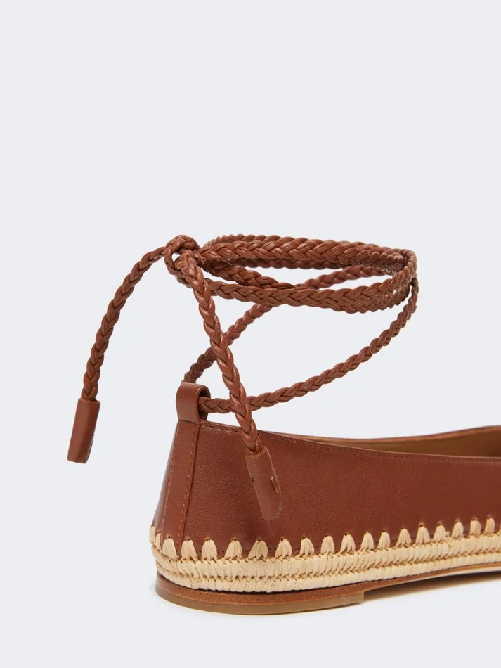 Be the first to review “Nappa and raffia ballerinas, tobacco”